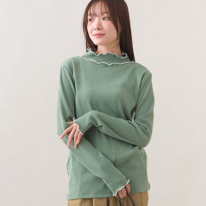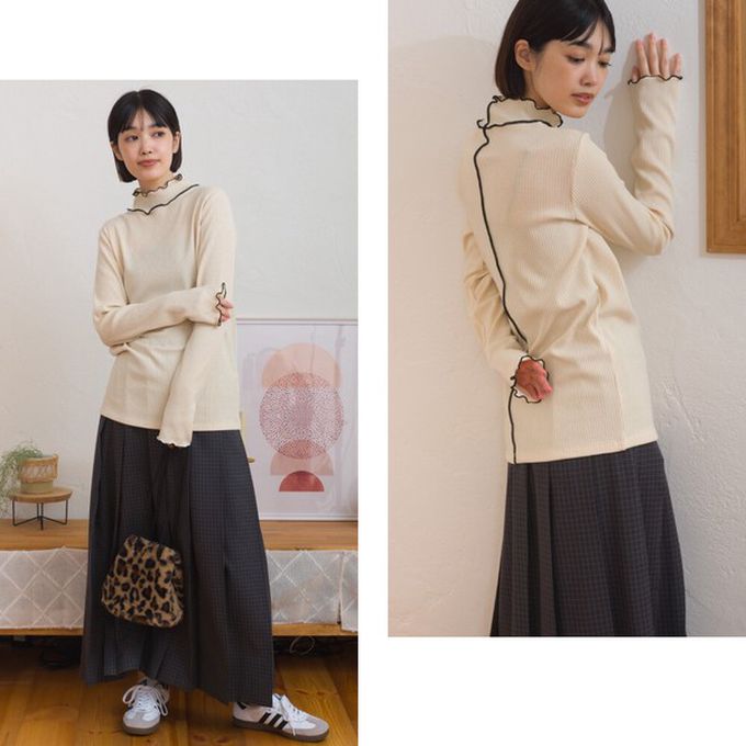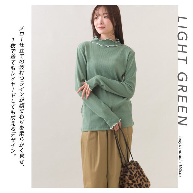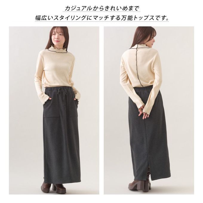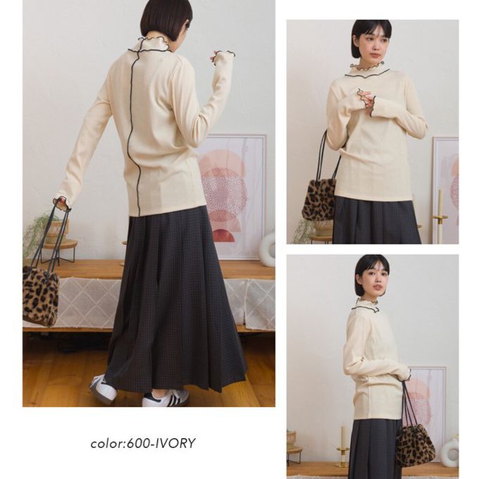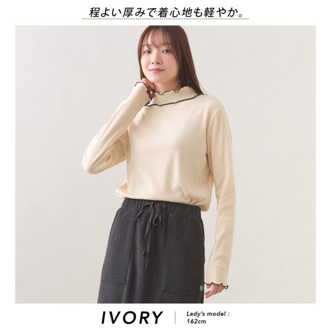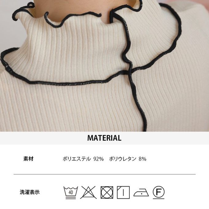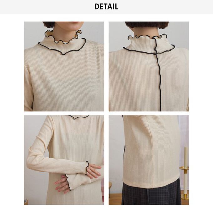 • 品名:柔美木耳滾邊顯瘦高領長袖上衣