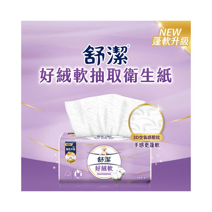 品名:好絨軟抽取衛生紙(棉花萃取精華乳) 90抽X64包(箱)-限量贈紅包袋(送完為止)