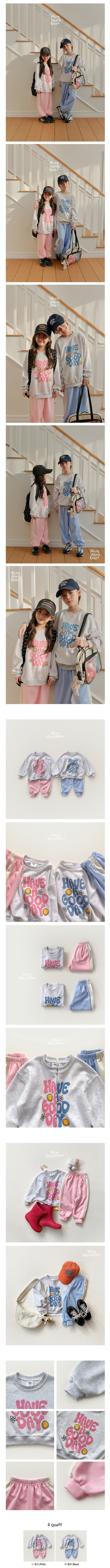 韓國南大門童裝 - W.S.B. 長袖休閒縮口褲套裝-GOOD DAY-淺灰X淺藍