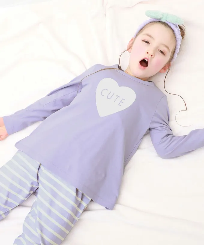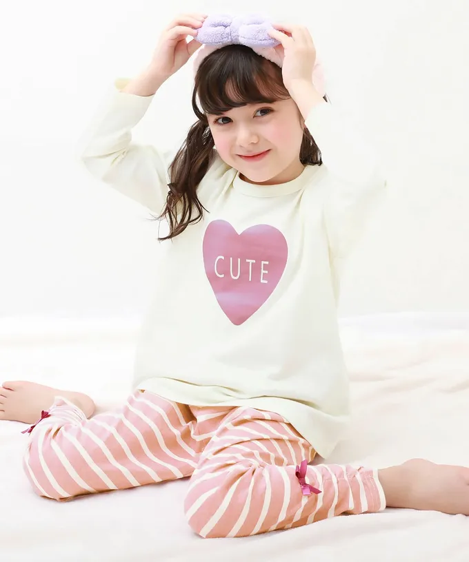 日本 devirock - 100%棉 高腰長袖家居服套裝(女孩款)-馬卡龍-嫩粉紅