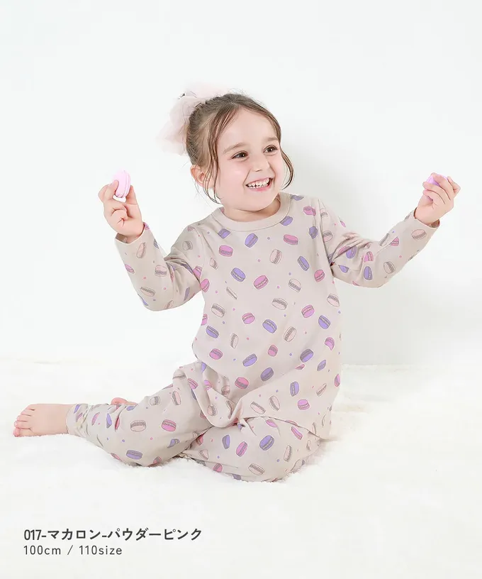 日本 devirock - 100%棉 高腰長袖家居服套裝(女孩款)-冰淇淋-杏x藍