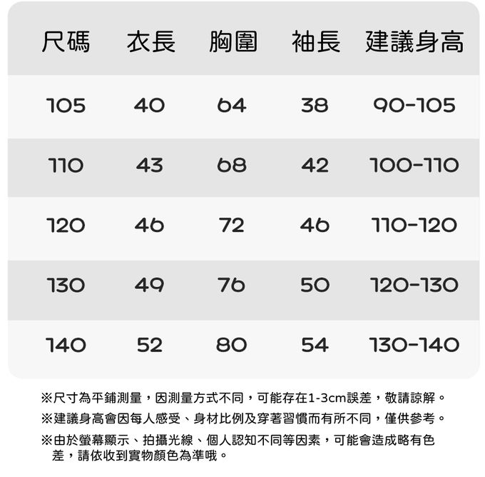 105cm、110cm、120cm、130cm、140cm