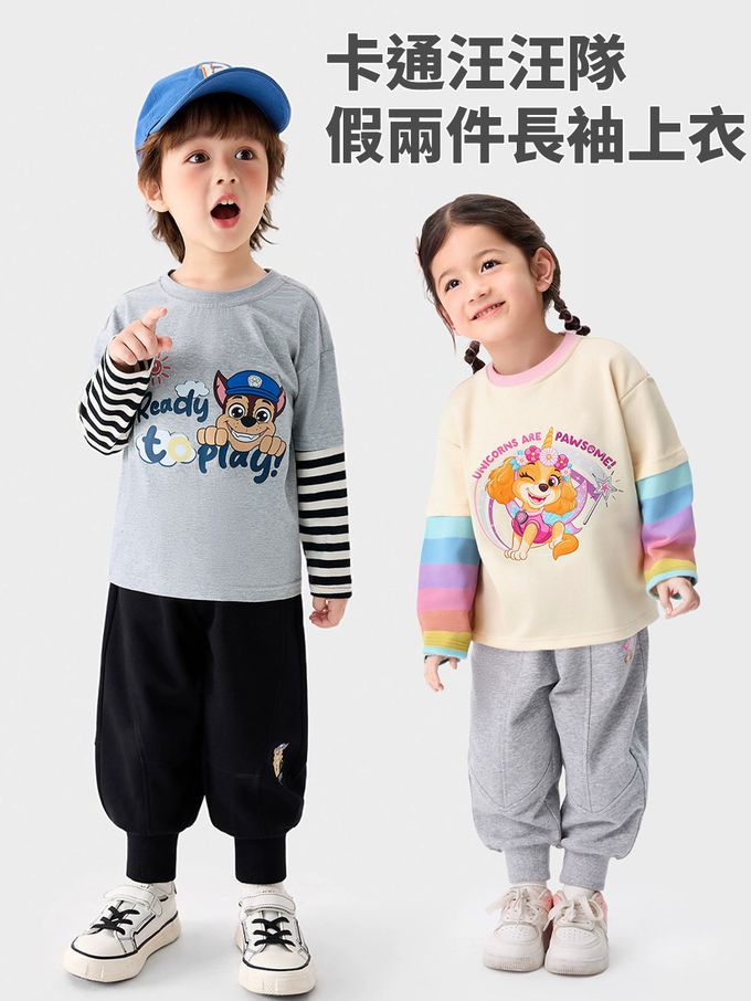 品名:卡通汪汪隊假兩件長袖上衣