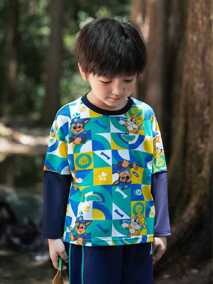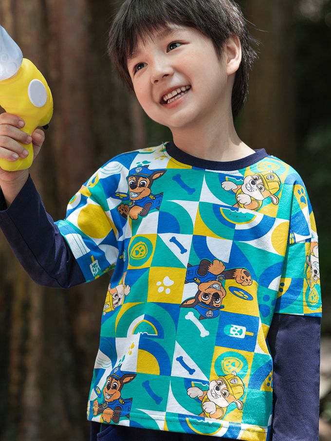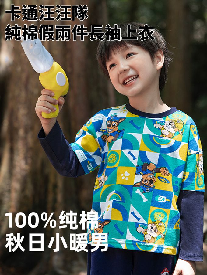 品名:卡通汪汪隊純棉假兩件長袖上衣