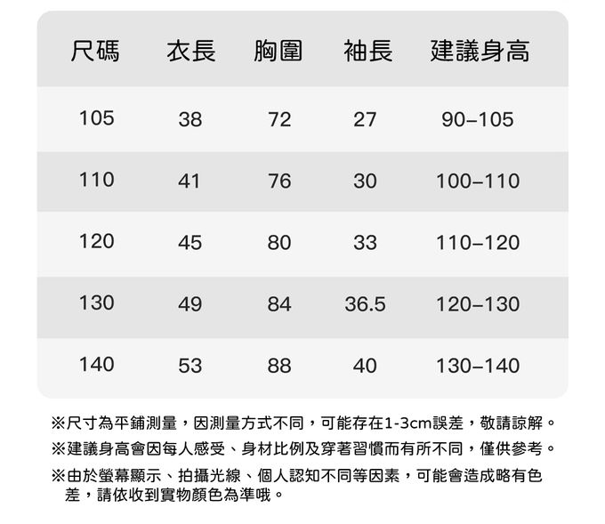 105cm、110cm、120cm、130cm、140cm