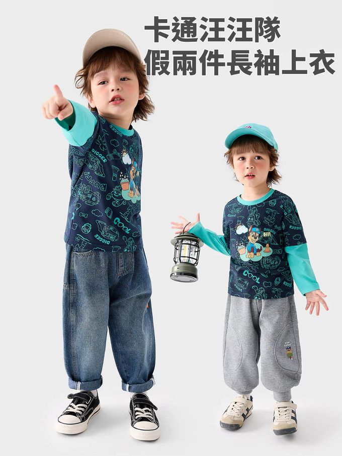品名:卡通汪汪隊假兩件長袖上衣