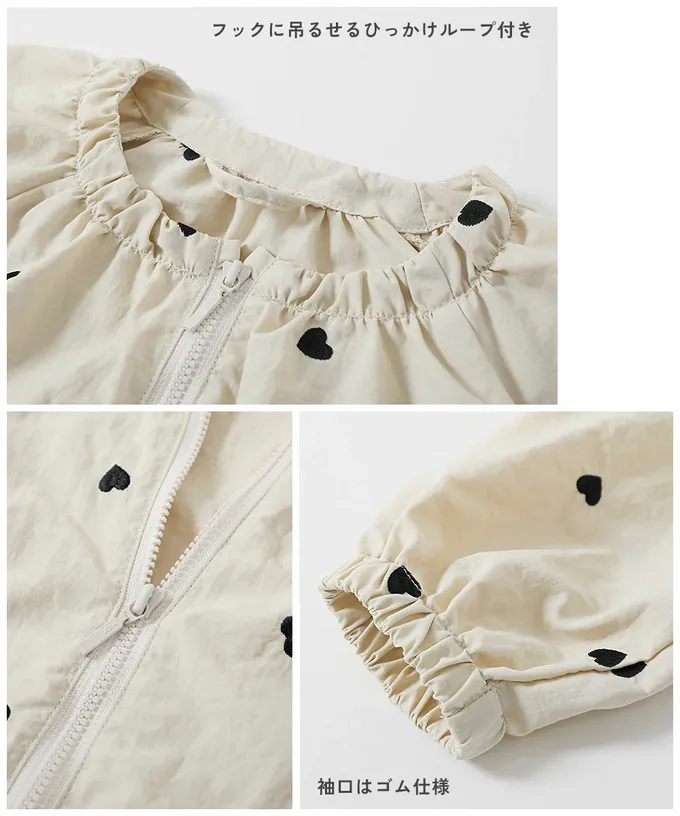 日本 devirock - 甜美愛心刺繡防潑水無領外套-象牙