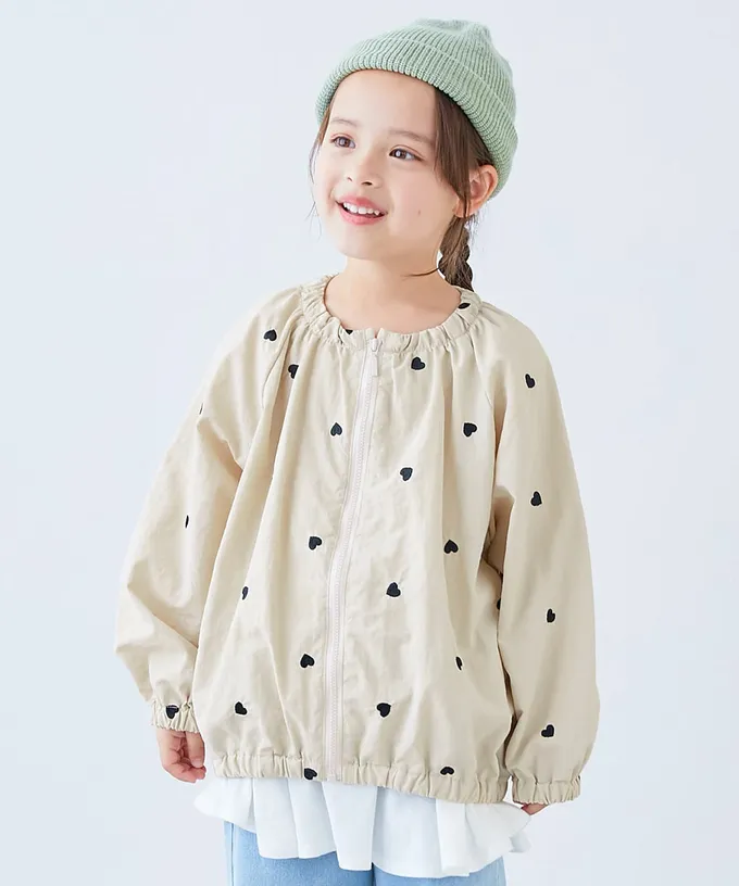 • 品名:甜美愛心刺繡防潑水無領外套