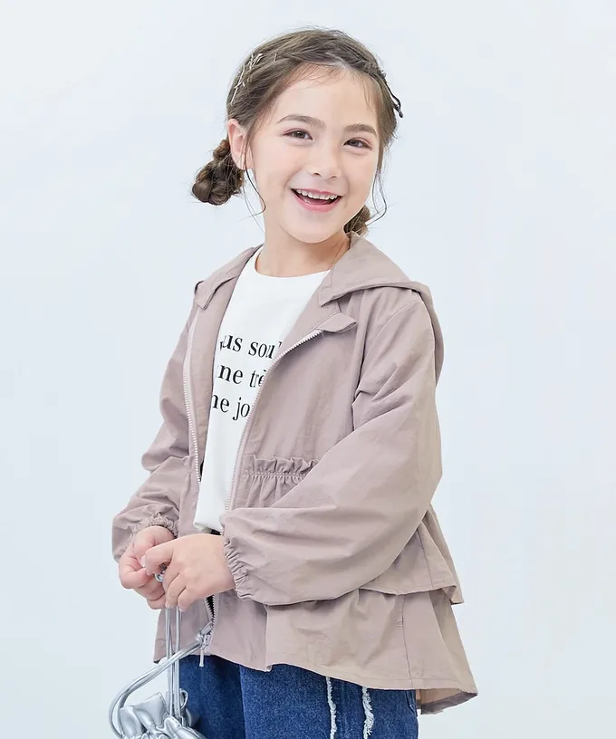 日本 devirock - 防潑水 層次荷葉輕量風衣外套(帽可拆)-杏粉紅
