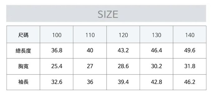 1. 尺寸表單位皆為公分(cm),實際尺寸會因布料彈性、水洗、測量起迄點等因素略有誤差。