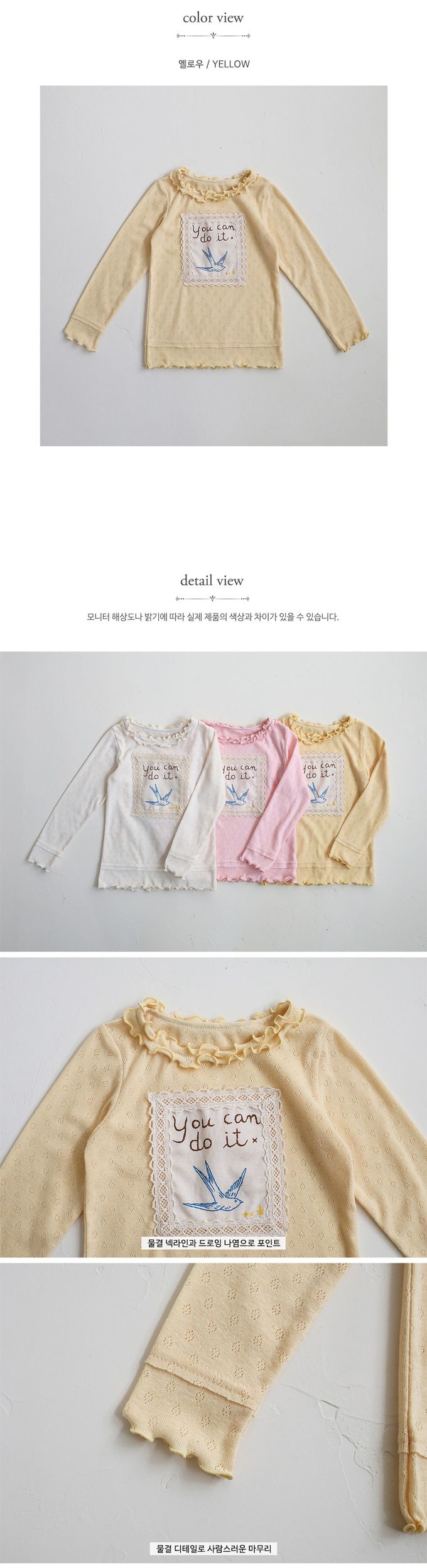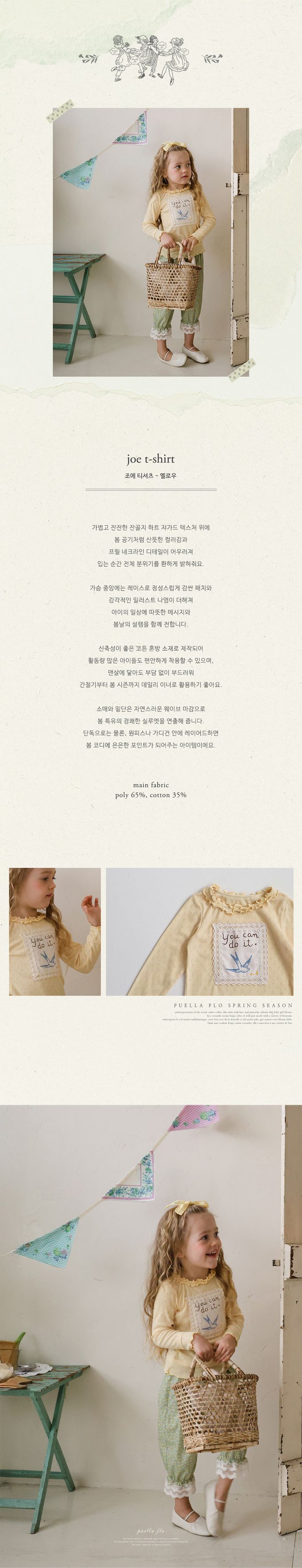 韓國南大門童裝 - Puellaflo 浪漫花邊復古蕾絲布章長袖上衣-淺黃