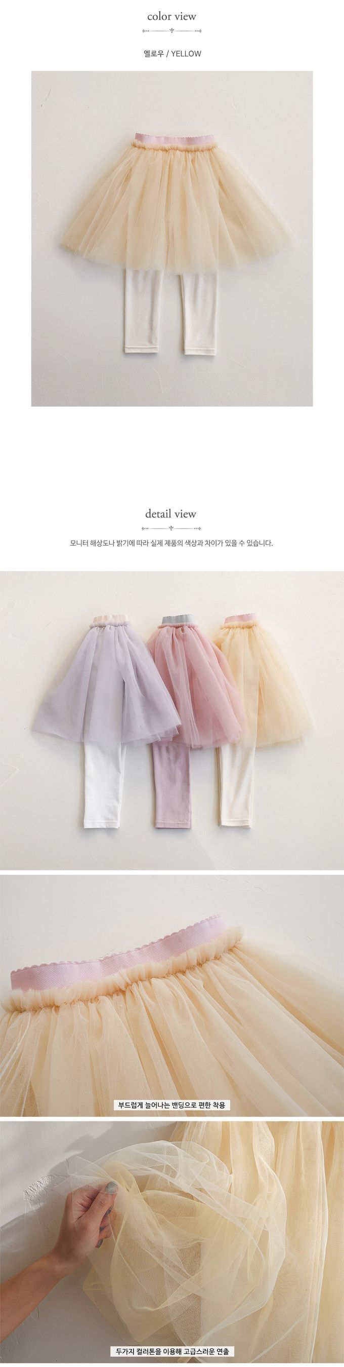 韓國南大門童裝 - Puellaflo 鬆緊腰層次飄逸網紗裙內搭褲-黃