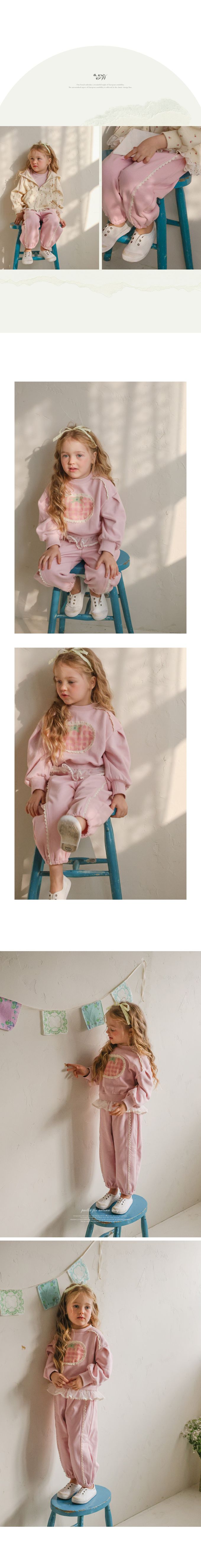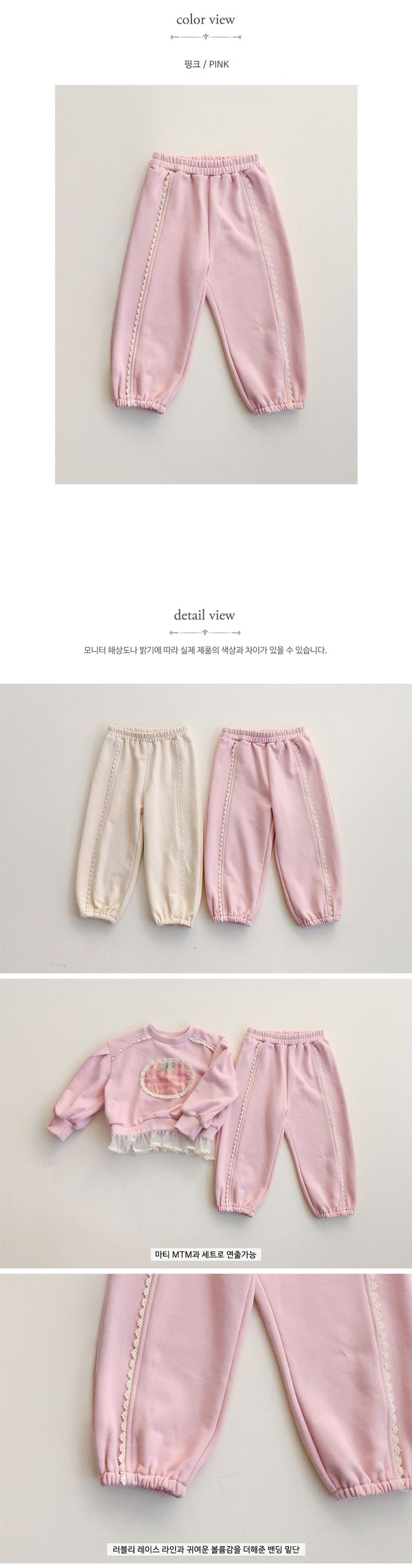 韓國南大門童裝 - Puellaflo 鬆緊腰蕾絲點綴休閒縮口褲-粉