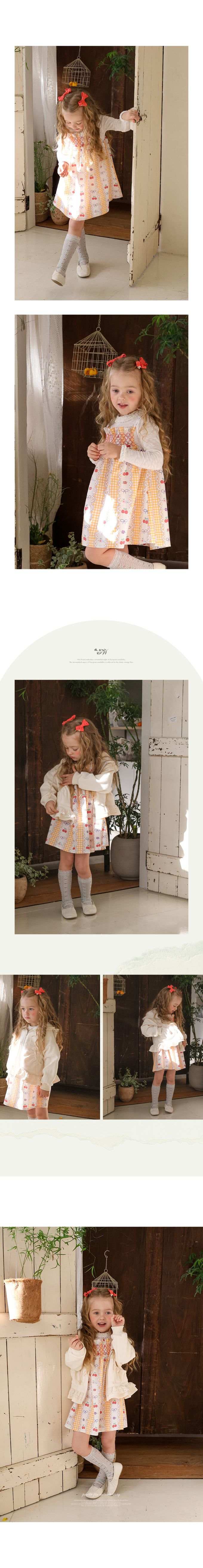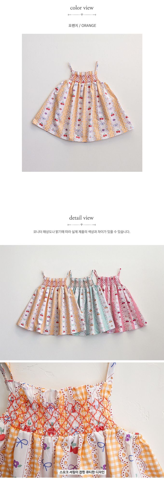 韓國南大門童裝 - Puellaflo 花漾莓果格紋細印細肩洋裝-橘黃