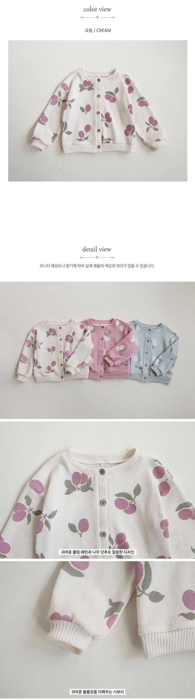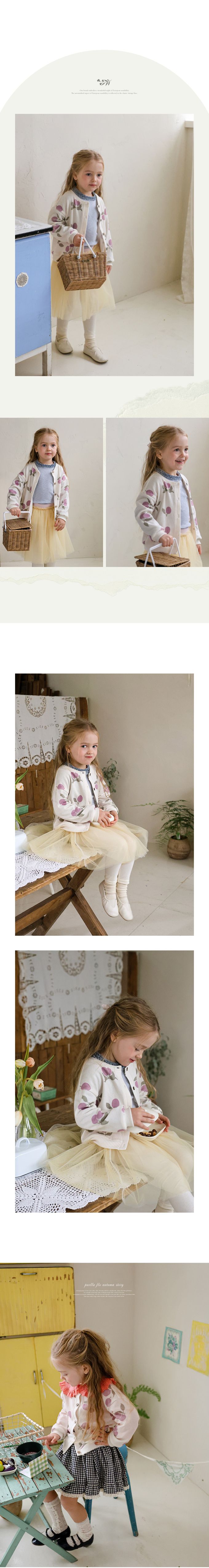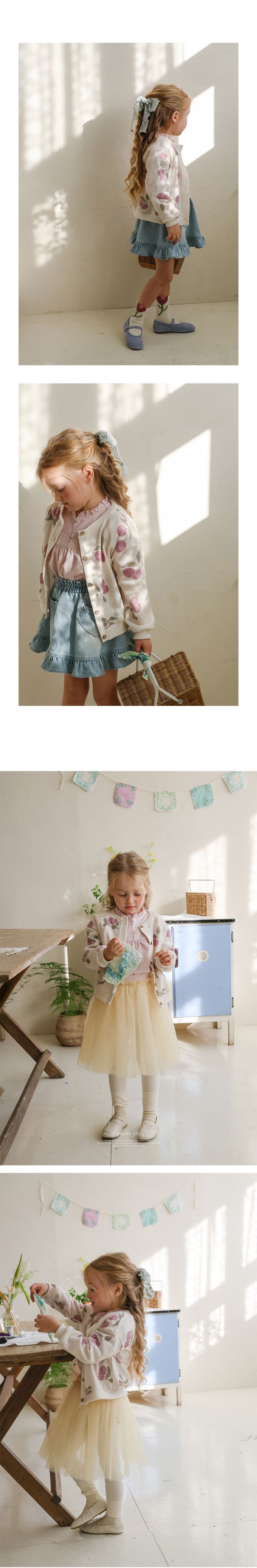 韓國南大門童裝 - Puellaflo 滿版果實印花細膩針織無領外套-優格白