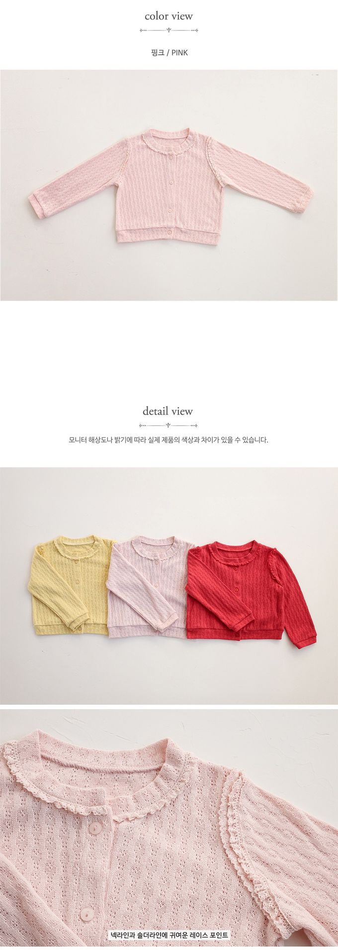 韓國南大門童裝 - Puellaflo 輕甜鏤空織紋針織外套-櫻花粉