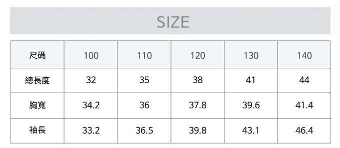 1. 尺寸表單位皆為公分(cm),實際尺寸會因布料彈性、水洗、測量起迄點等因素略有誤差。