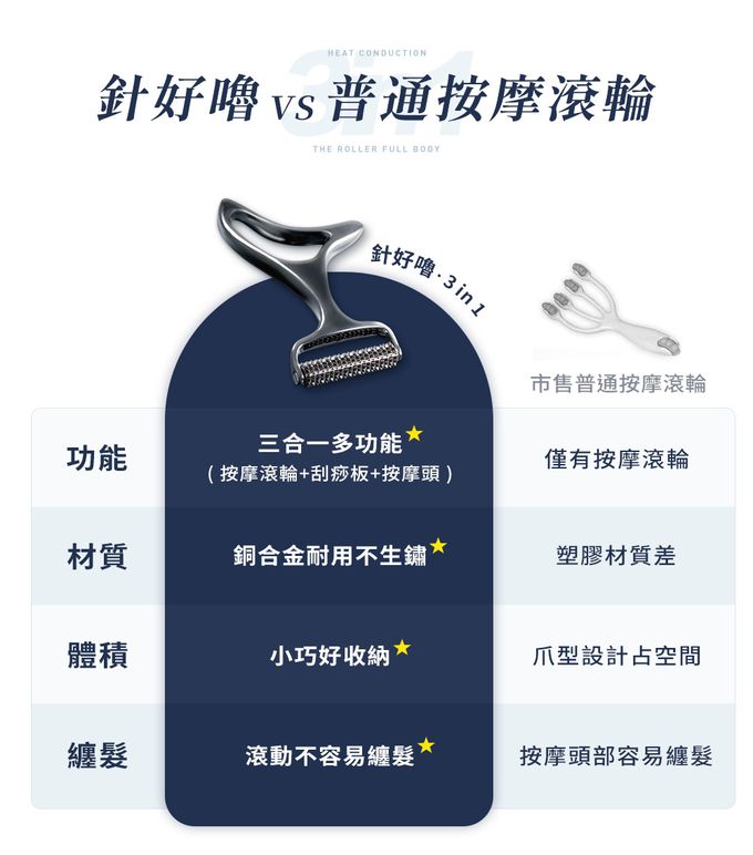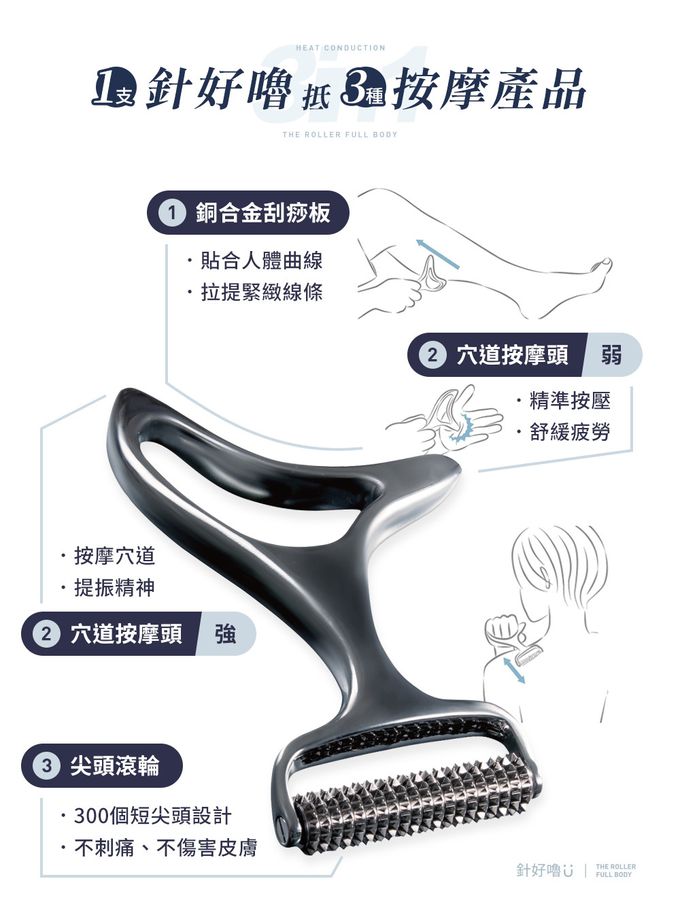 品名:針好嚕|三合一 按摩刮痧滾輪