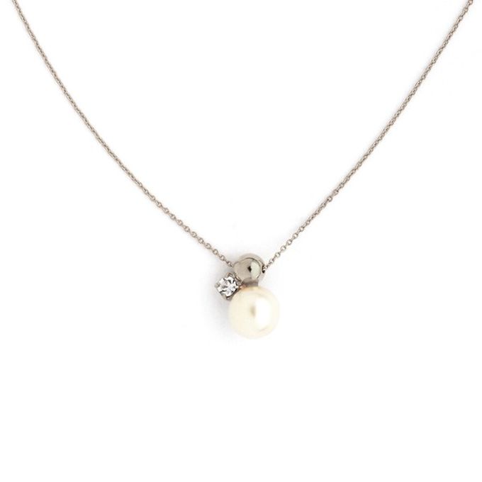 日本 Melody Accessory - 日本製 光澤柔美珍珠寶石項鍊-銀