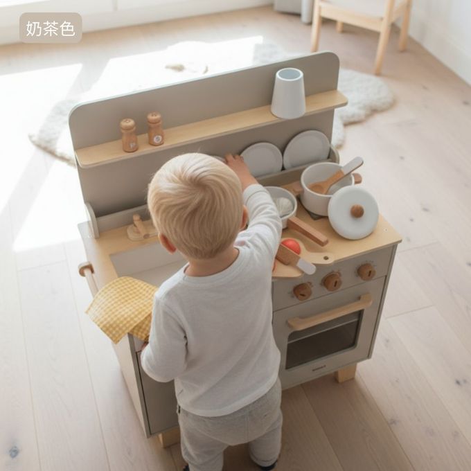 莫蘭迪小主廚木製廚房玩具-奶茶色