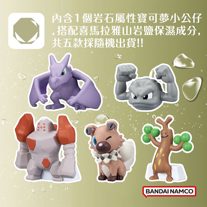 搭配喜馬拉雅山岩鹽保濕成分,共五款岩石系寶可夢,就讓我們一起來抓寶吧!!