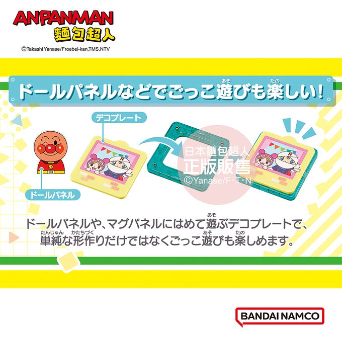 3. 搭配不同配件體驗扮家家酒遊戲:不只是單純的形狀組合,還可以搭配麵包超人圖案積木及麵包超人伙伴們的裝飾配件等,玩法更加有趣!