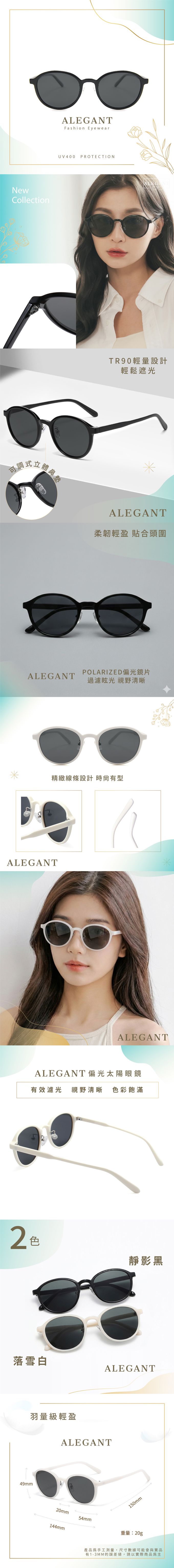 ALEGANT - 城市時尚TR90圓框偏光墨鏡│UV400太陽眼鏡