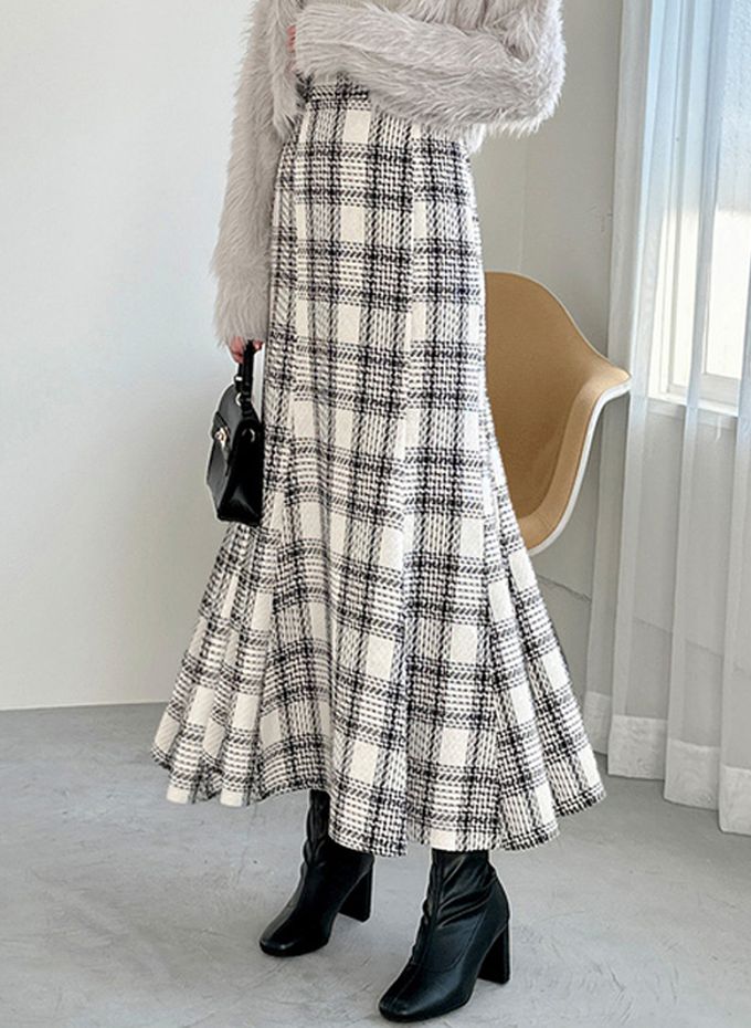 • 品名:經典粗花呢格紋優雅魚尾裙