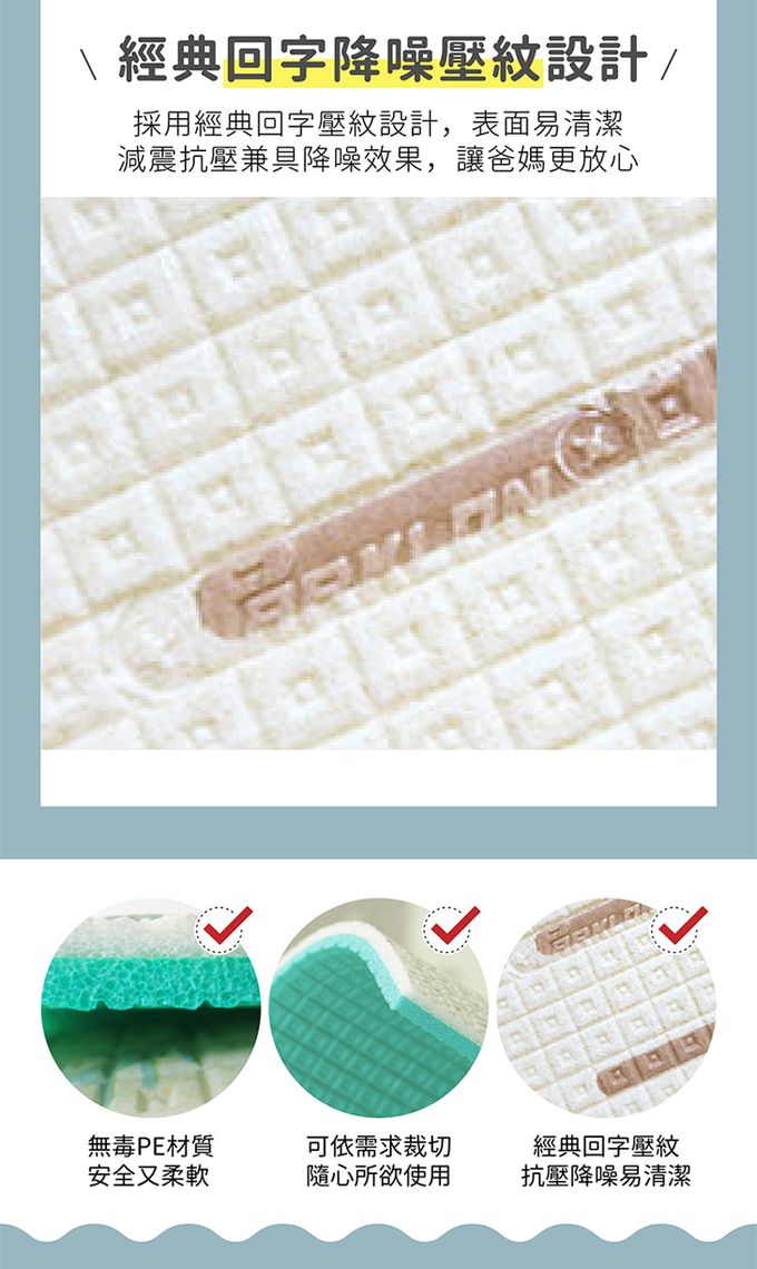 ▲ 使用無毒PE材質,特殊壓紋防滑設計。