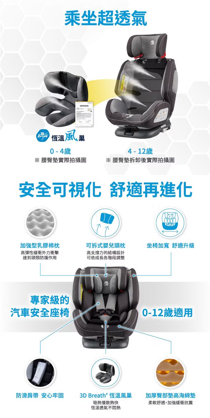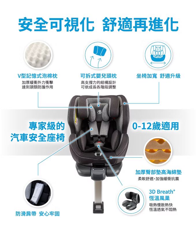 ▲專為0-12歲兒童打造的安心汽座