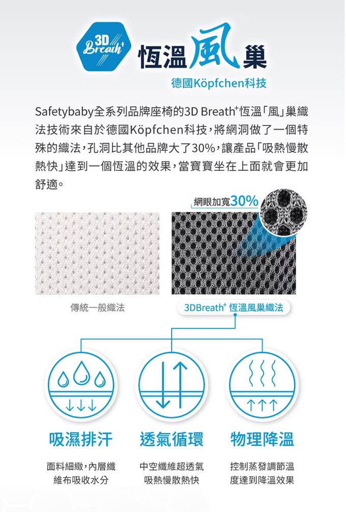 • ▲德國3D Breath+恆溫風巢材質