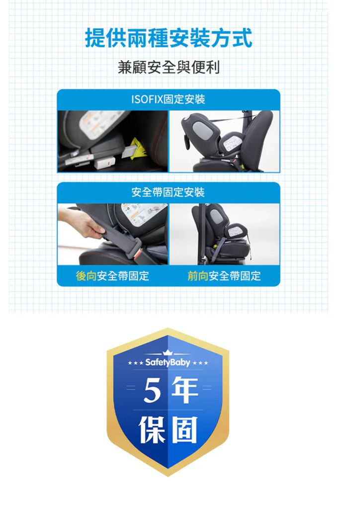 ▲可360度旋轉,支援 isofix 或安全帶兩種安裝方式