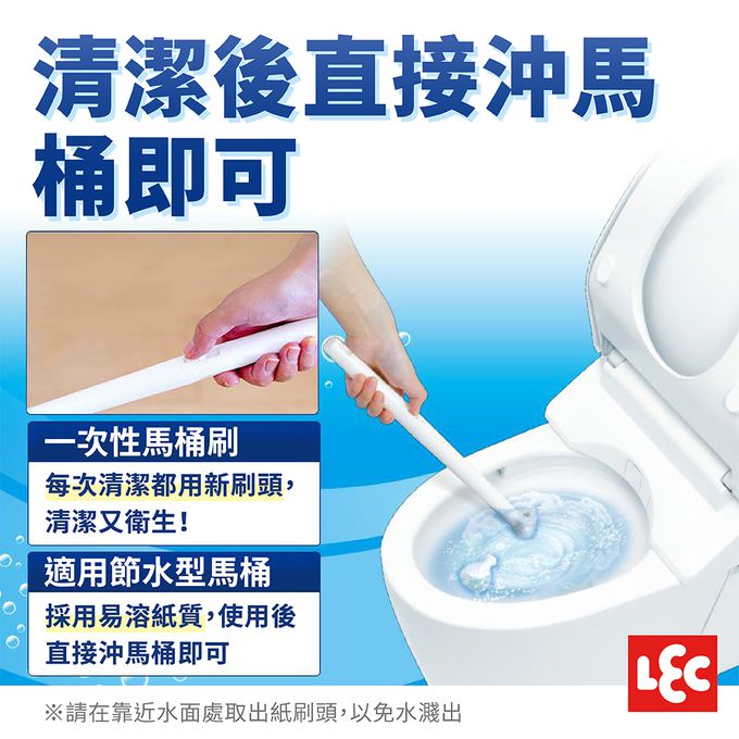 只需按壓握柄上的控制桿,紙刷頭就能脫落;採用易溶紙質,使用後直接沖馬桶即可。