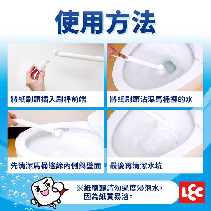 紙刷頭吸水後會膨脹變軟,能深入馬桶邊緣內側,看不到的地方也能徹底清潔。