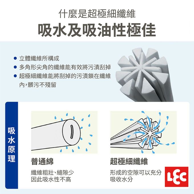 1. 驚人的吸水力: 加厚超極細纖維,吸水力提升50%!