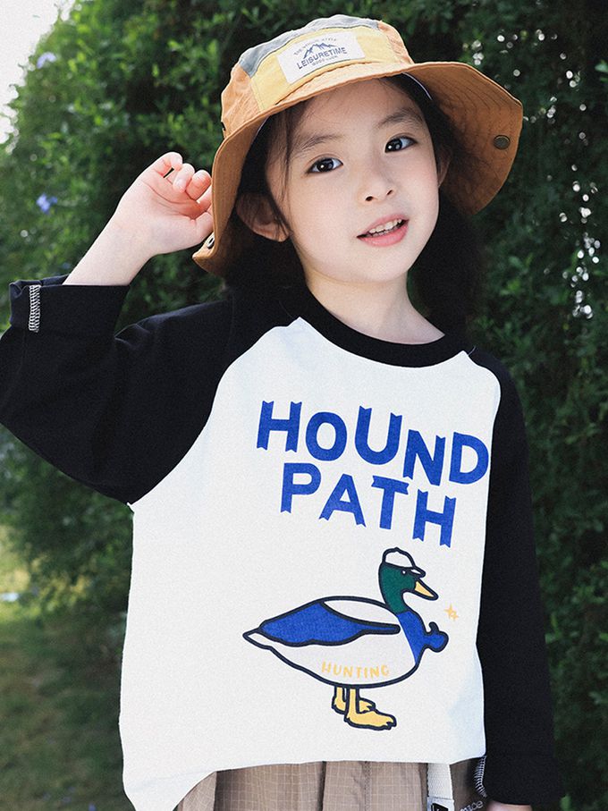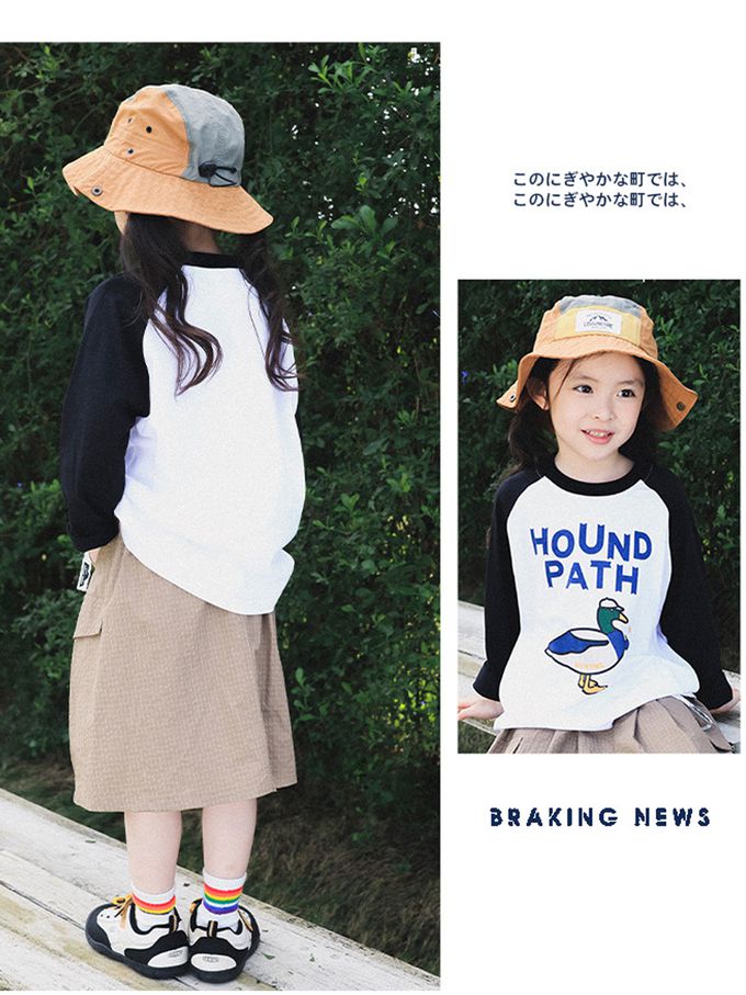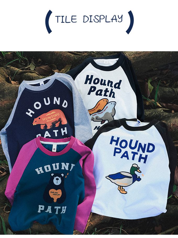 Y B S - 純棉撞色長袖上衣-潮流動物-白色