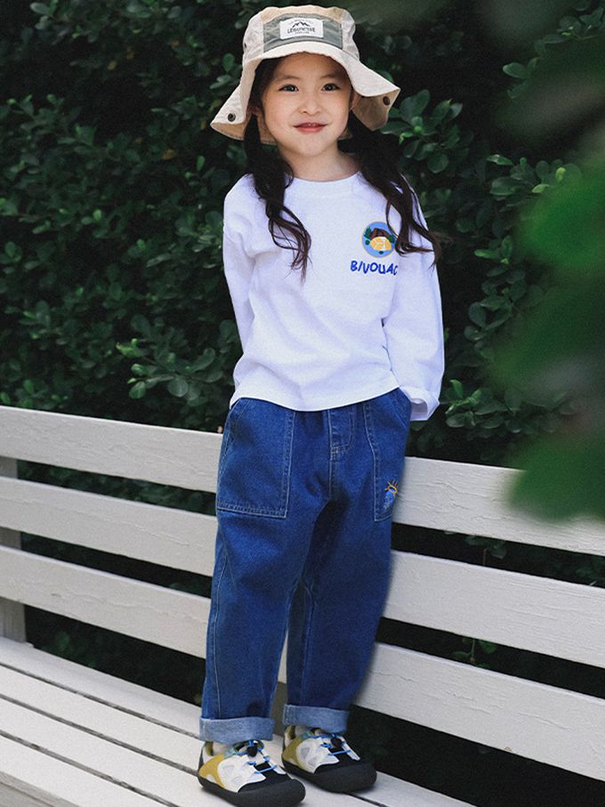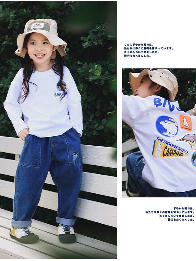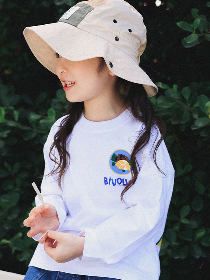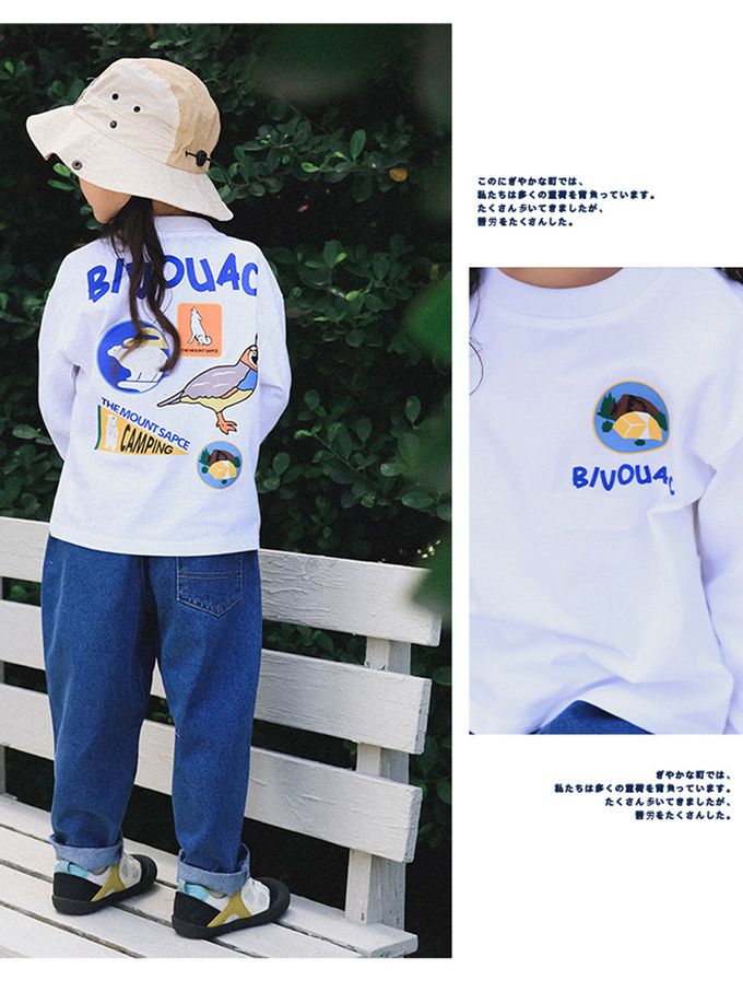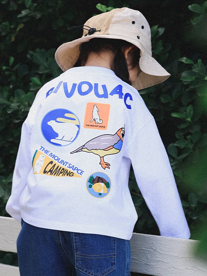 透氣快乾後印花長袖上衣-森林好友-白色