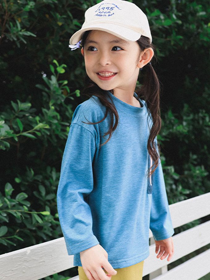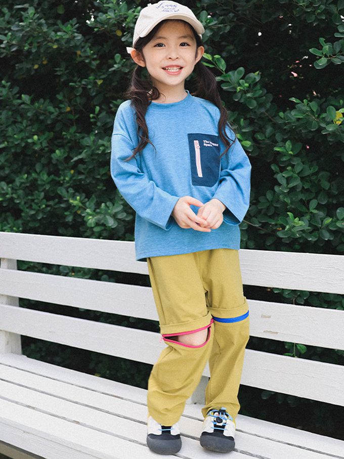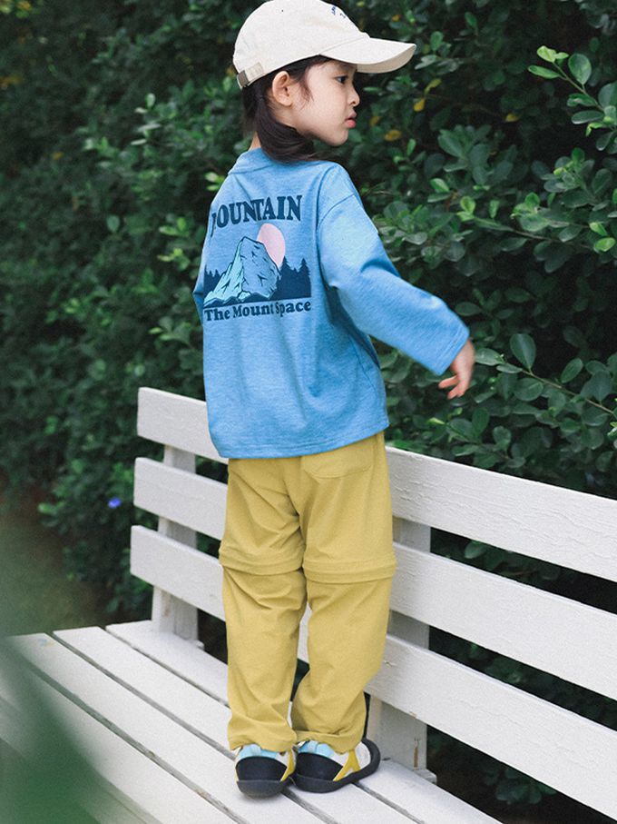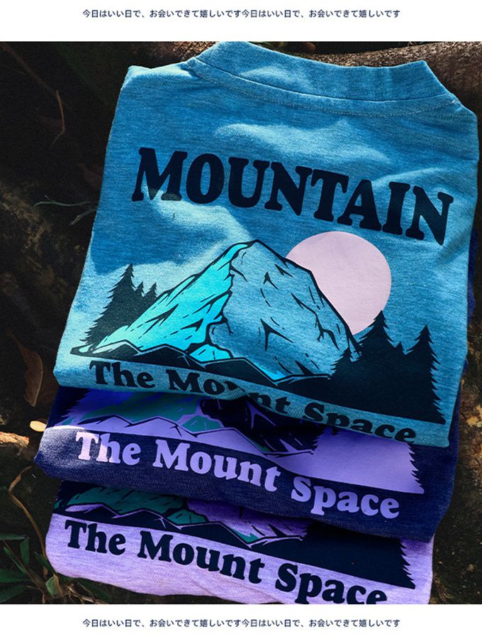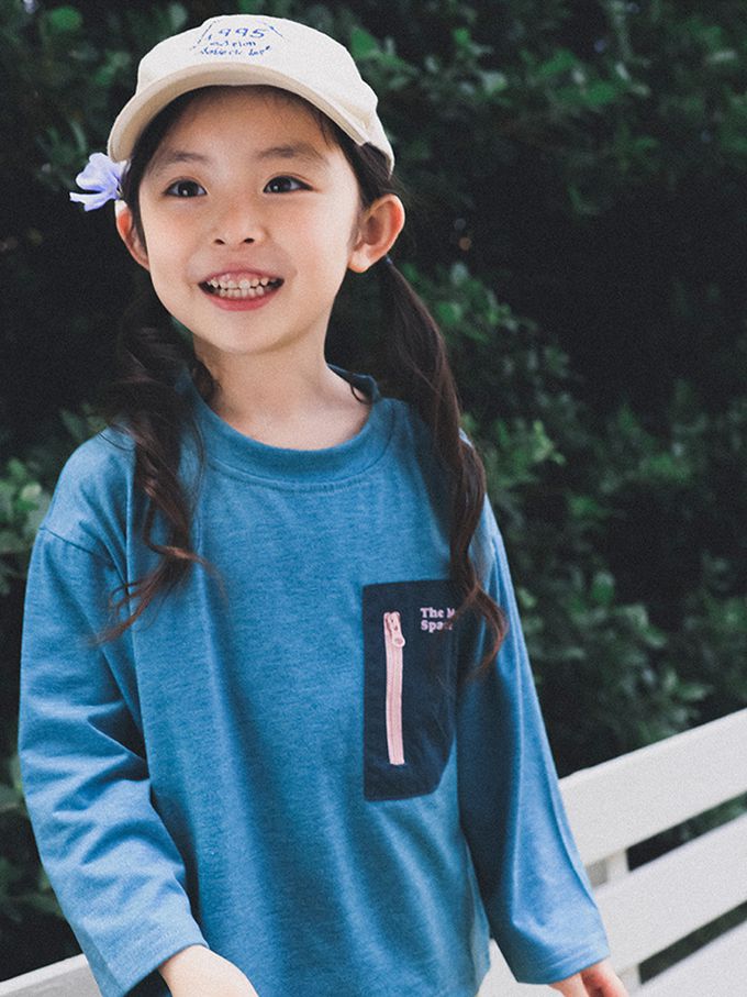 撞色口袋長袖上衣-復古大山插畫-藍色