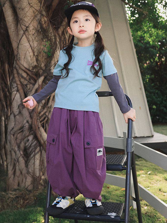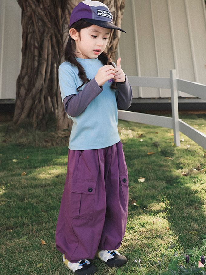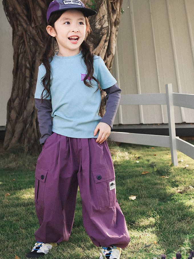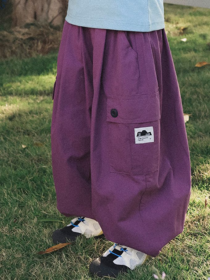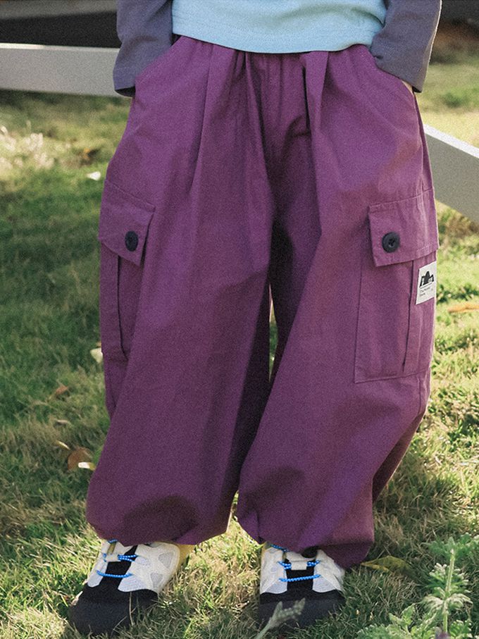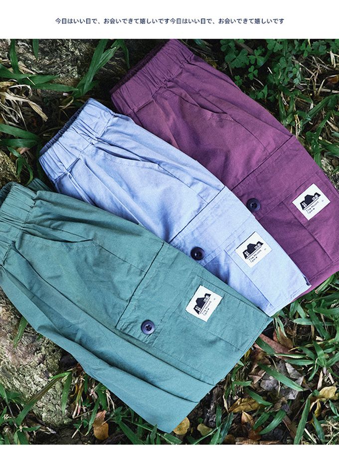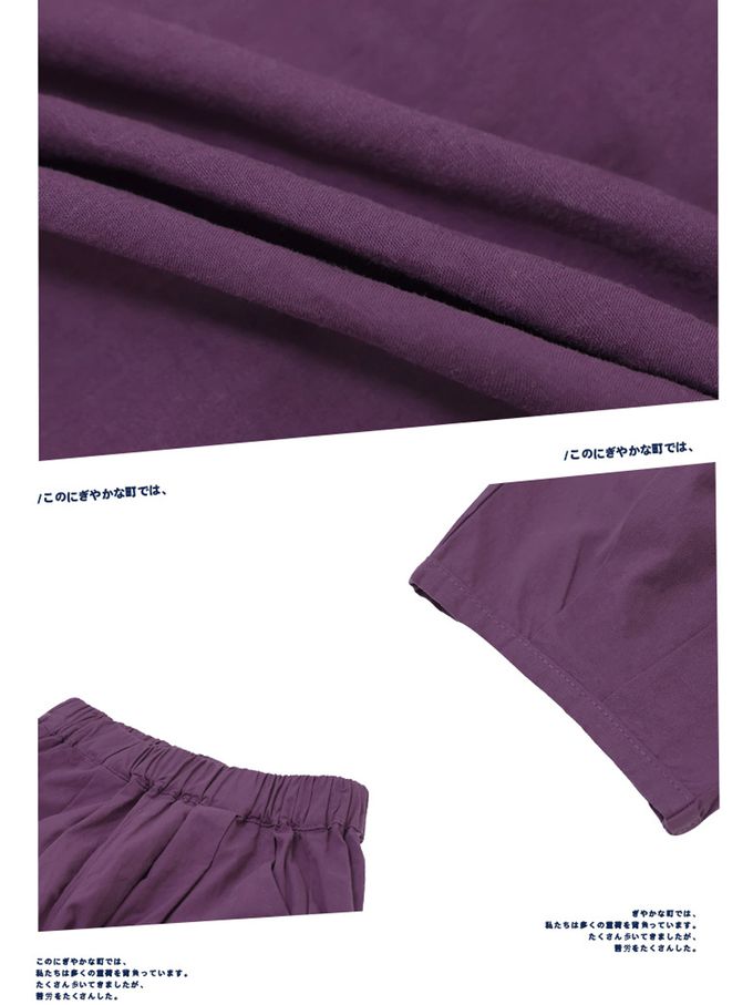 Y B S - 純棉耐磨休閒寬褲-紫色