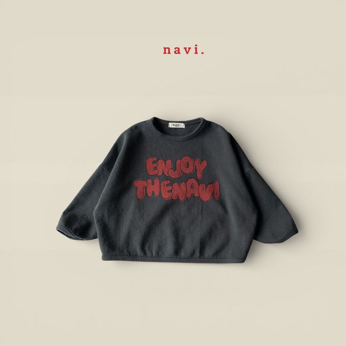 韓國南大門童裝 - NAVi 塗鴉文字純棉長袖上衣-深灰