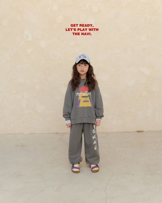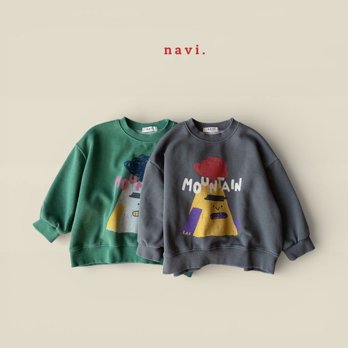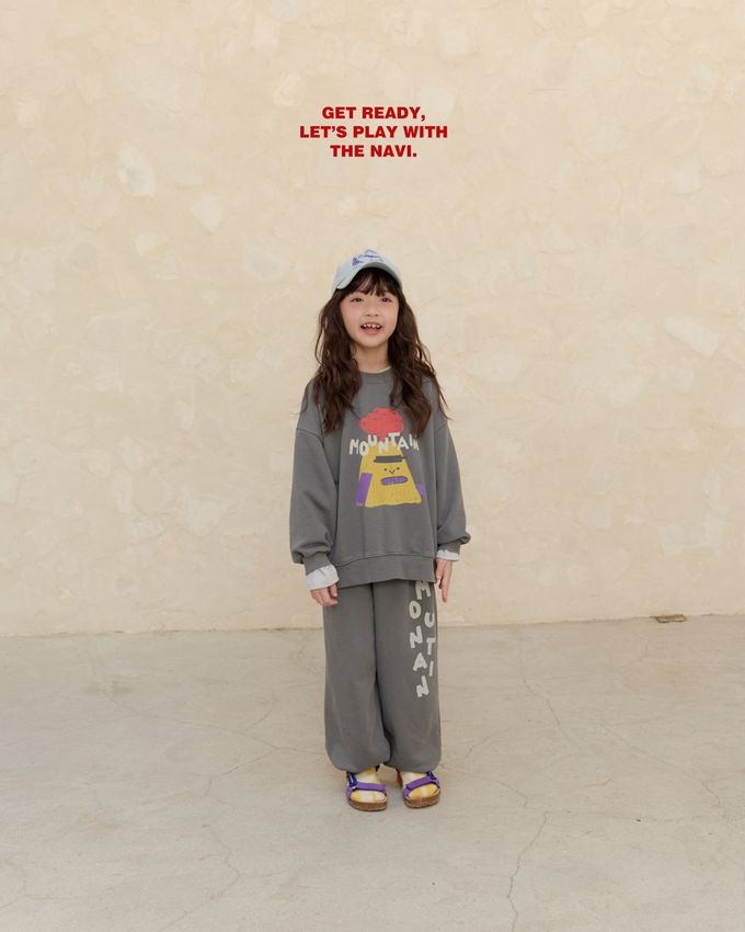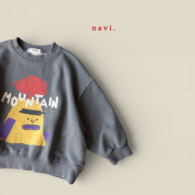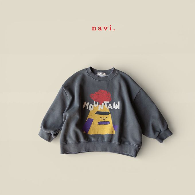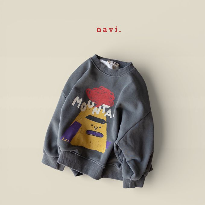 韓國南大門童裝 - NAVi 趣味山峰插畫長袖大學T-灰