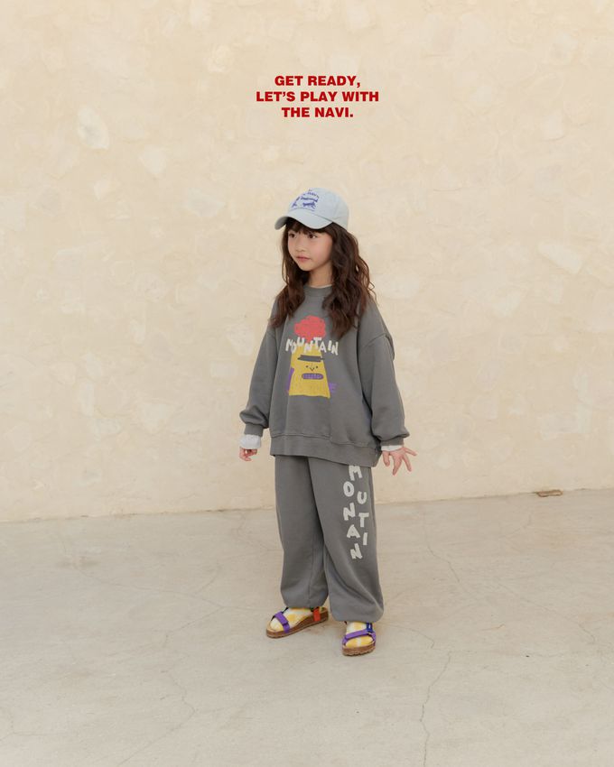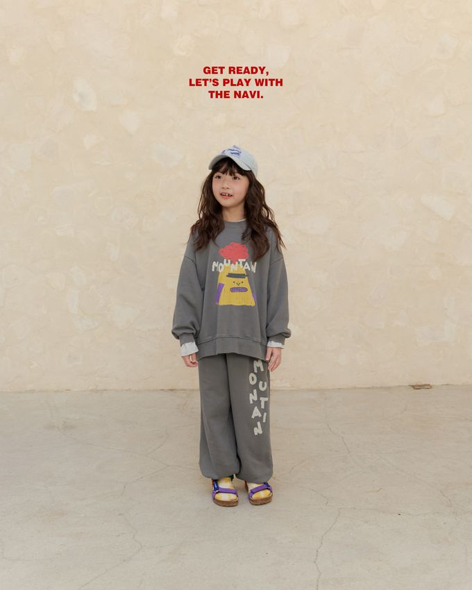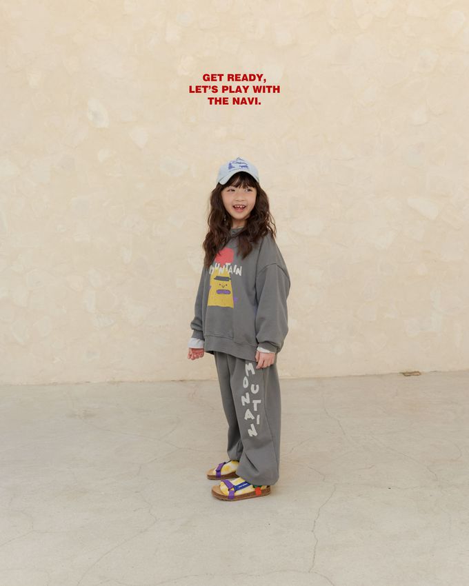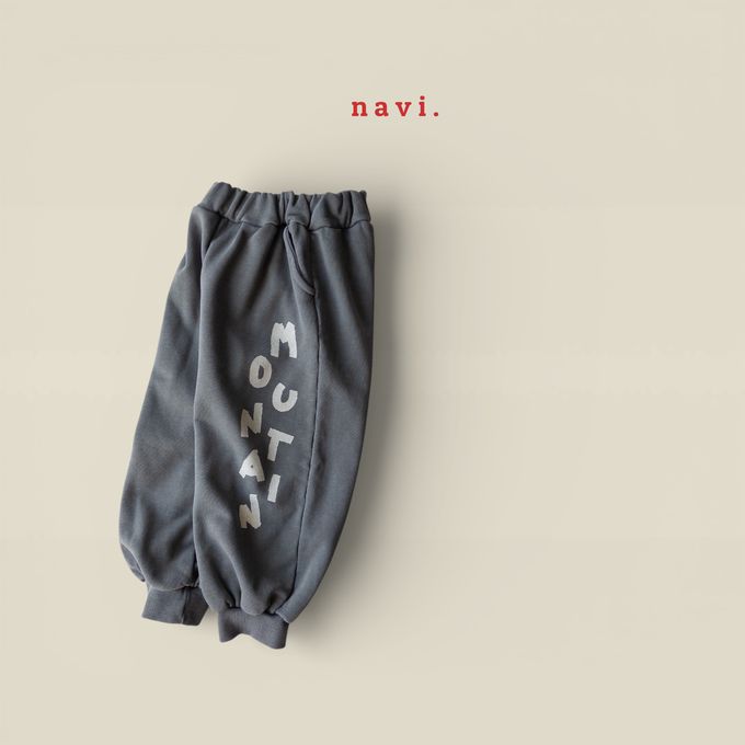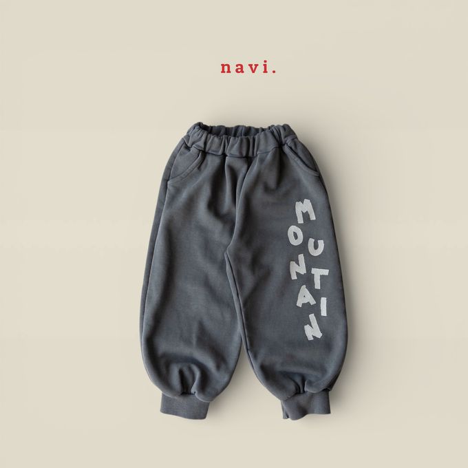 韓國南大門童裝 - NAVi 鬆緊腰趣味山峰字印縮口棉褲-灰