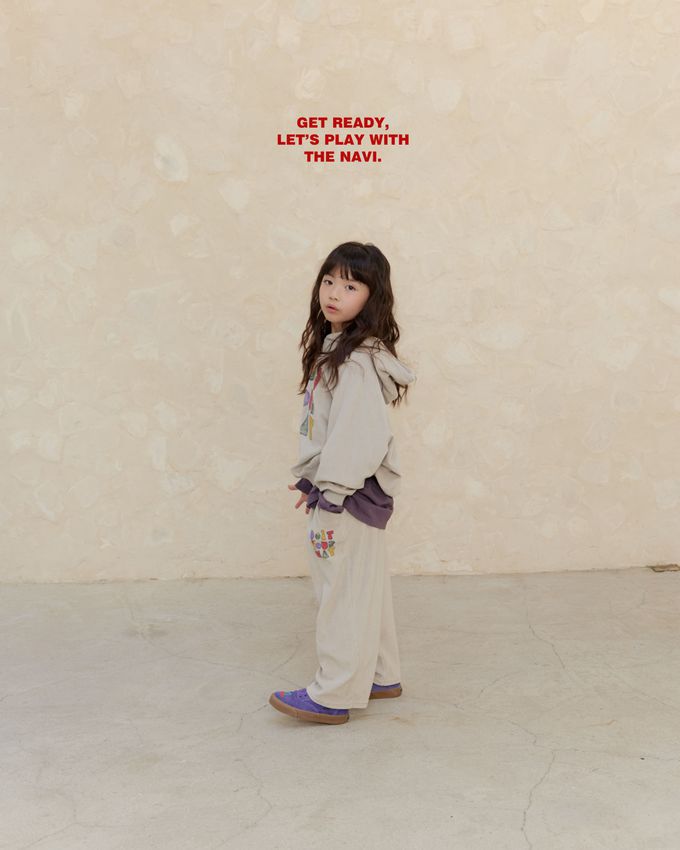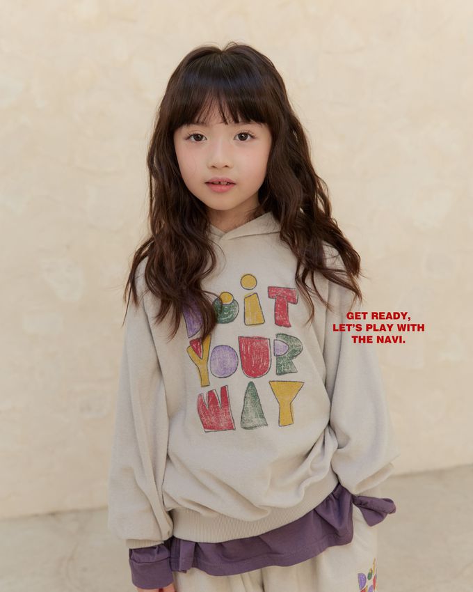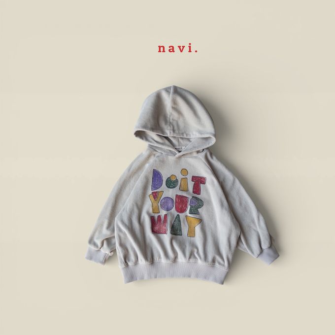 韓國南大門童裝 - NAVi 童趣手繪塗鴉文字長袖連帽T-淺灰