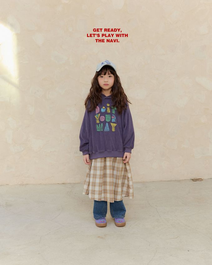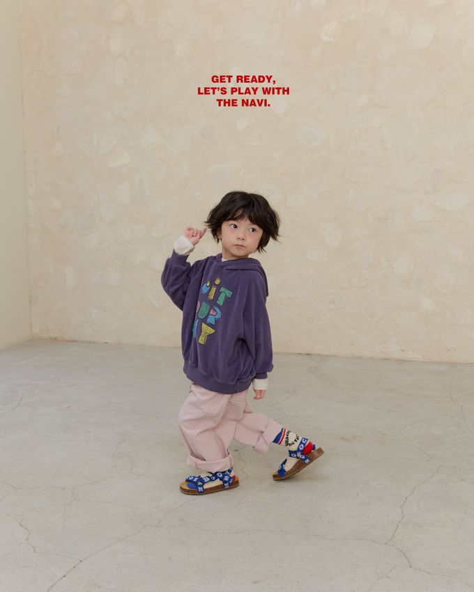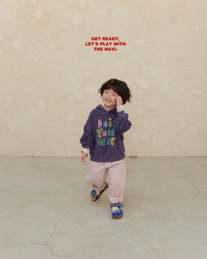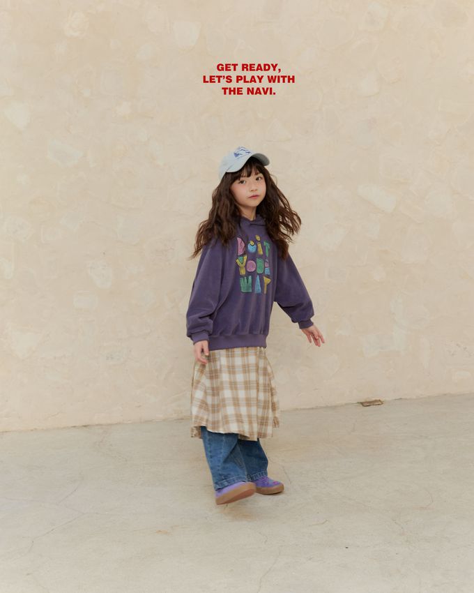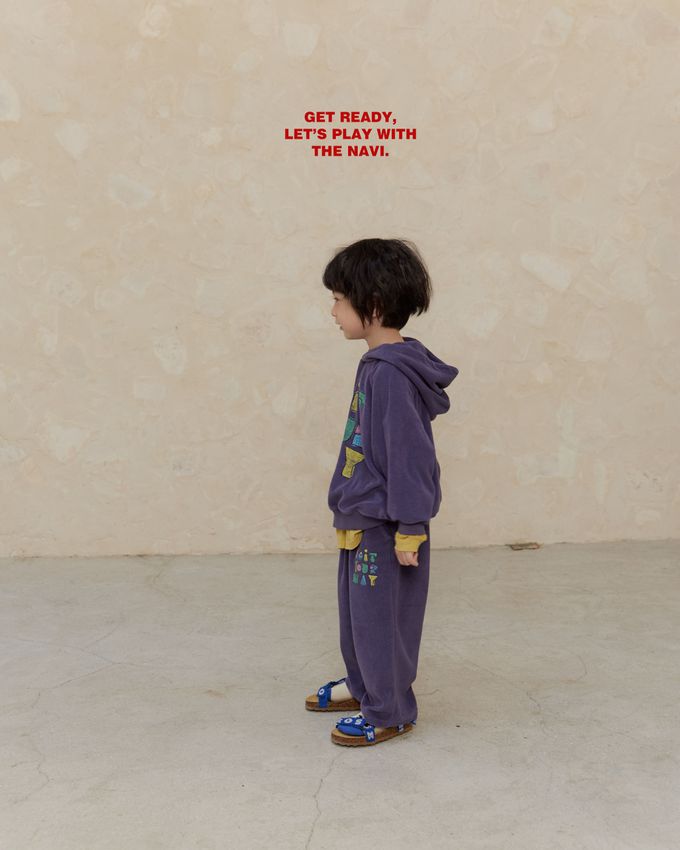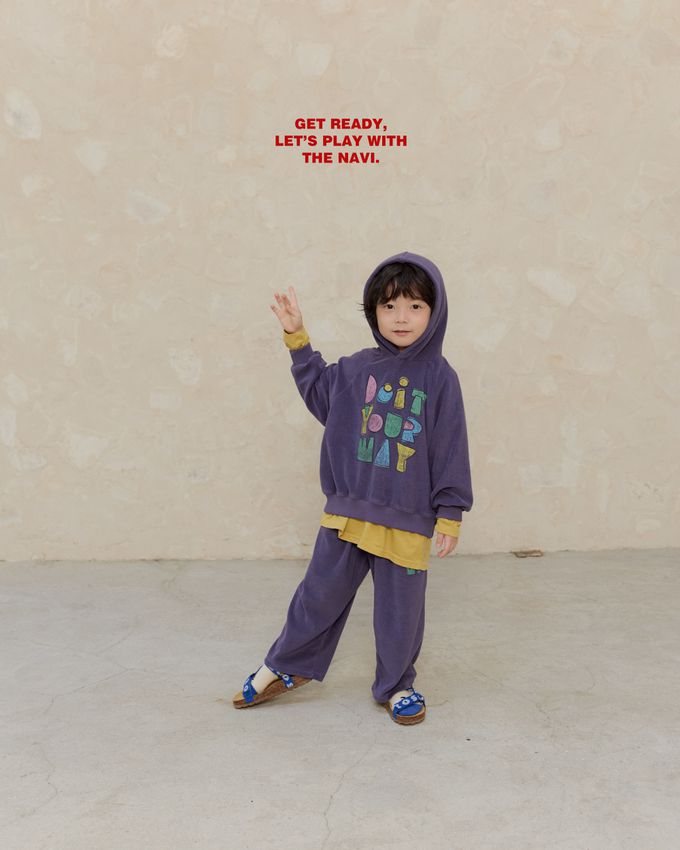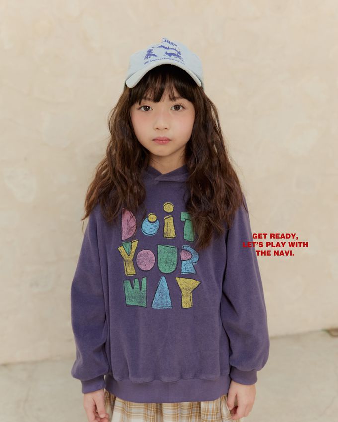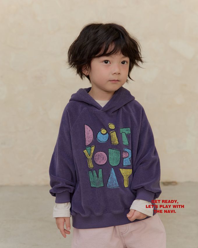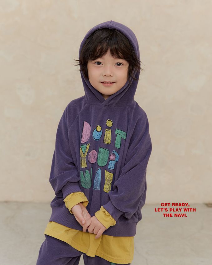 韓國南大門童裝 - NAVi 童趣手繪塗鴉文字長袖連帽T-紫