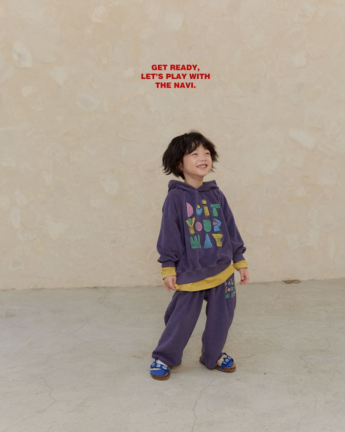 韓國南大門童裝 - NAVi 鬆緊腰童趣手繪塗鴉文字休閒長褲-紫