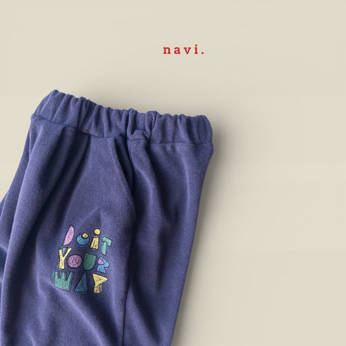 • 品名:NAVi 鬆緊腰童趣手繪塗鴉文字休閒長褲