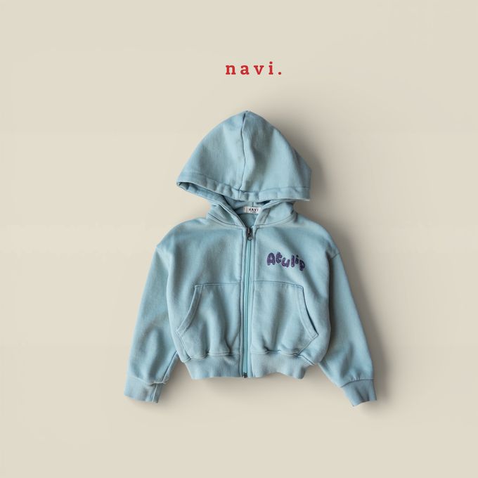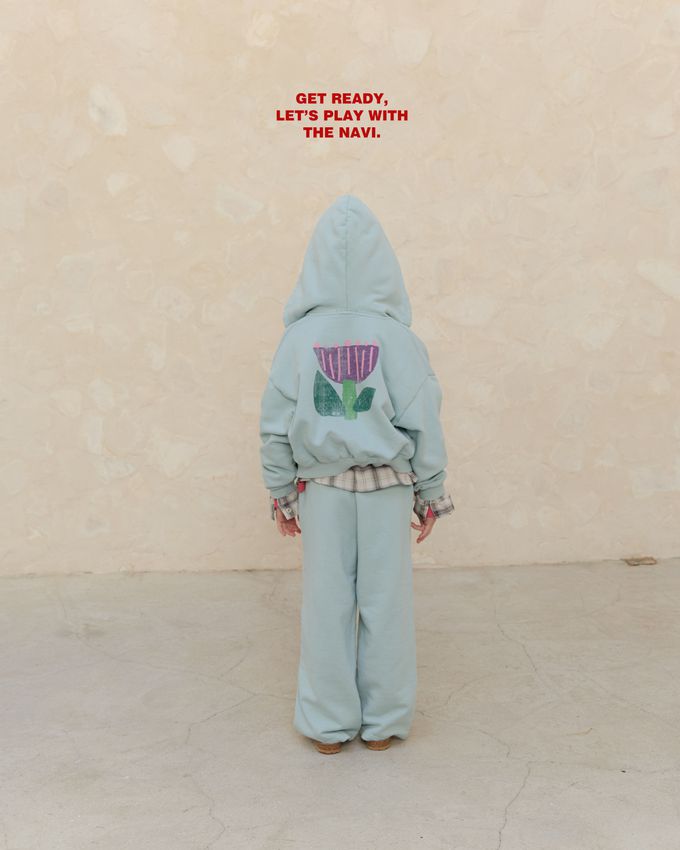 韓國南大門童裝 - NAVi 童趣鬱金香塗鴉長袖連帽外套-天藍