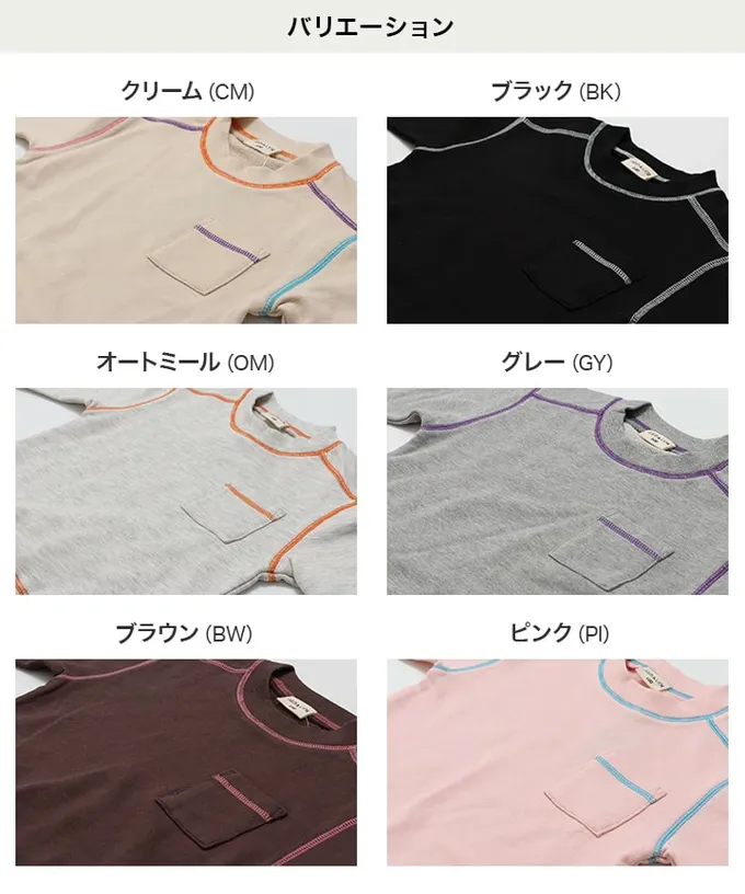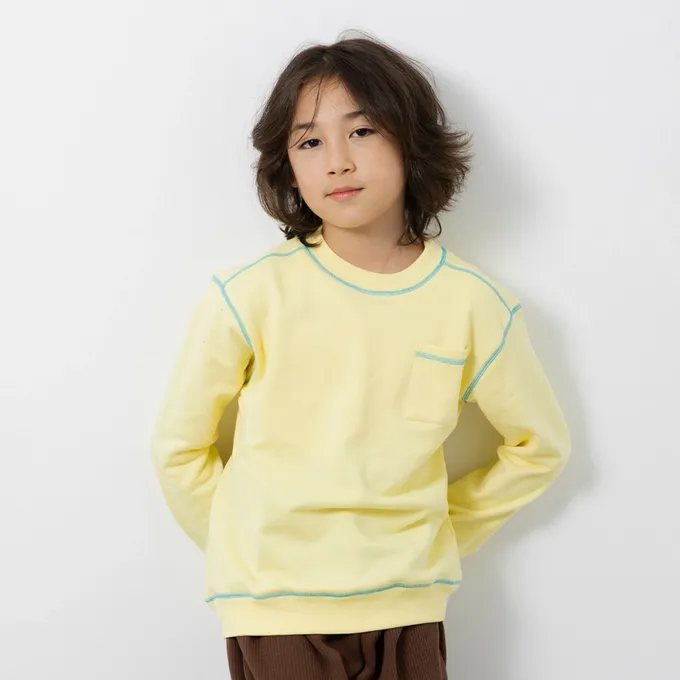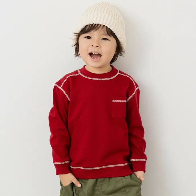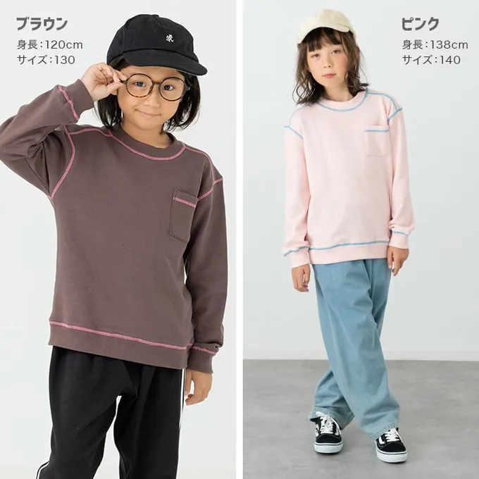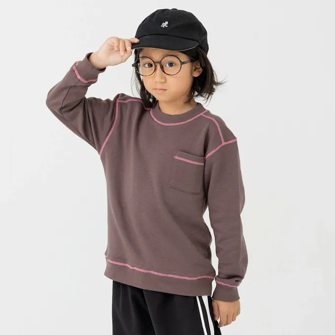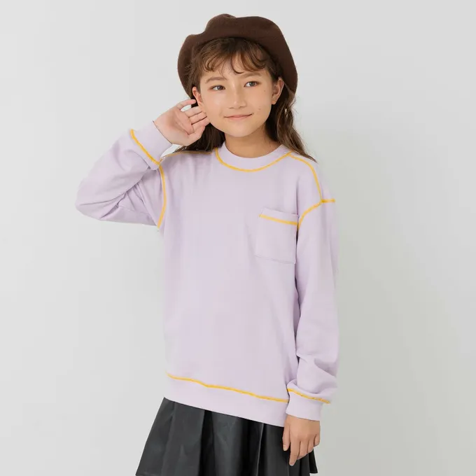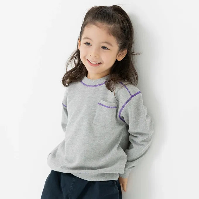日本 Chil2 - 配色縫線簡約裏毛長袖上衣-粉紅x藍線