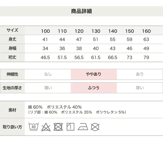 100cm、110cm、120cm、130cm、140cm、150cm、160cm