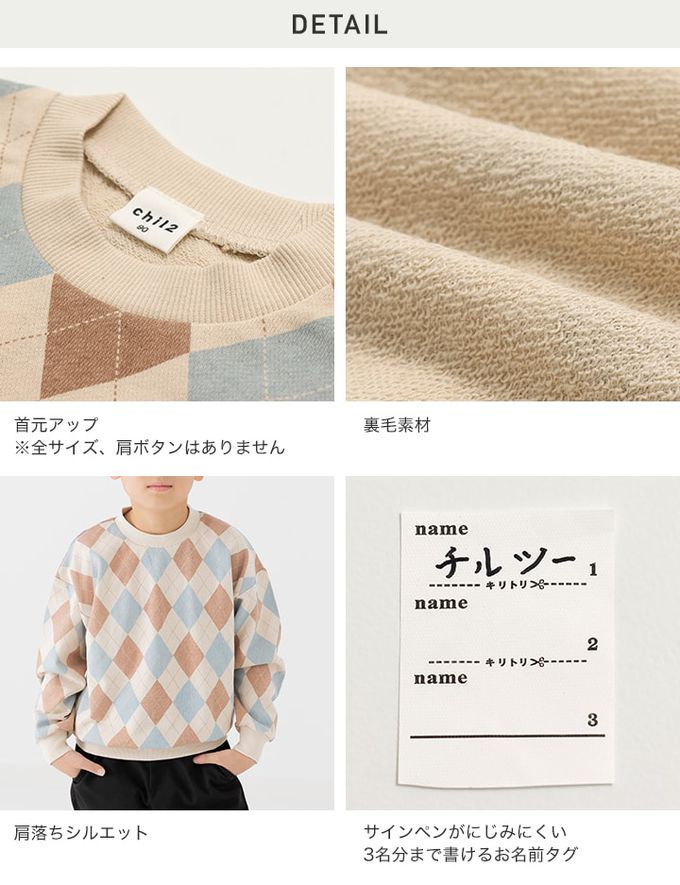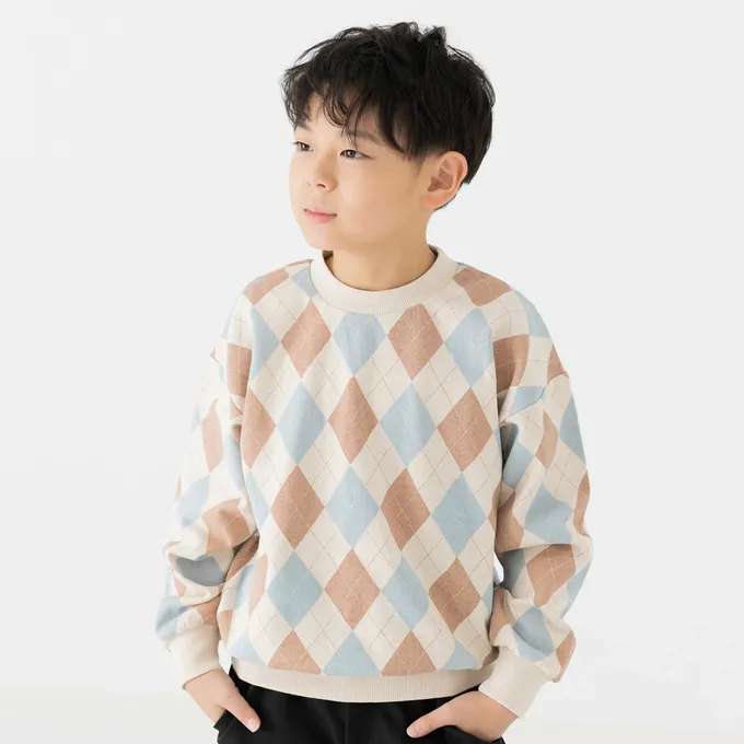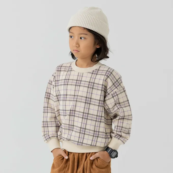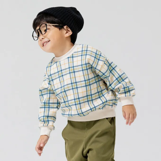 日本 Chil2 - 100%棉 北歐風印花裏毛長袖上衣-格紋-藍綠